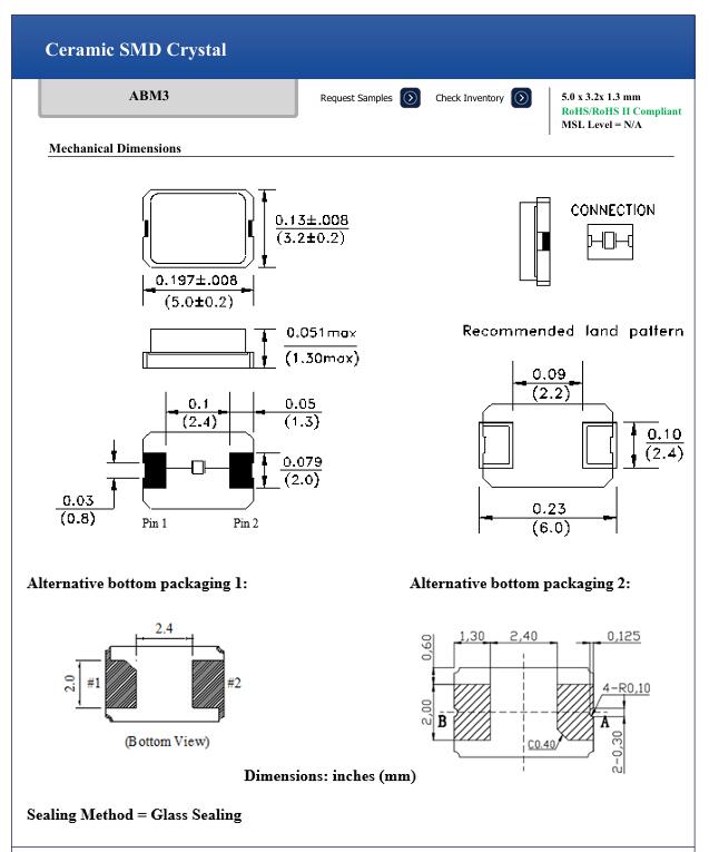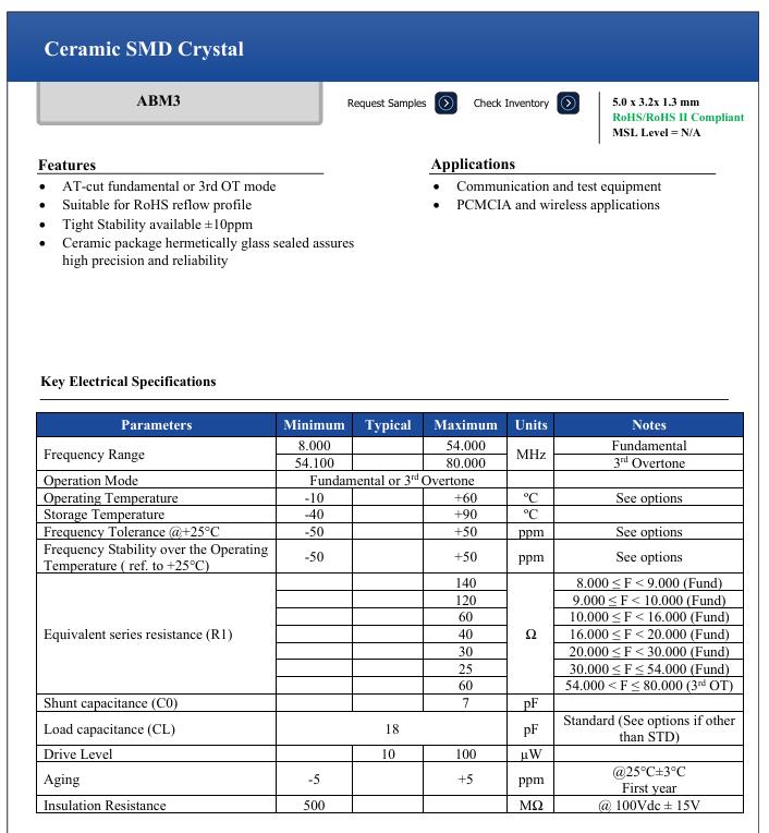 | 晶振規格參數 | ABM3晶振SMD晶振 |