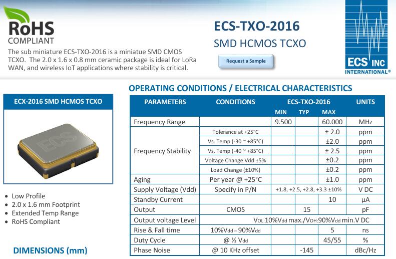 晶振之重,在于其為物聯(lián)網(wǎng)設(shè)備提供“心跳”般的精準(zhǔn)時(shí)鐘信號(hào).作為一款溫補(bǔ)晶振(TCXO),ECS-TXO-2016最亮眼的特質(zhì)便是-40~+85℃寬溫范圍內(nèi)2.5ppm的頻率穩(wěn)定度.這一精度意味著在極寒的極地探測(cè)或高溫的工業(yè)車(chē)間,設(shè)備時(shí)鐘誤差仍能控制在極低范圍.LoRaWAN等無(wú)線(xiàn)通信技術(shù)對(duì)時(shí)序同步要求嚴(yán)苛,正是這種穩(wěn)定性讓遠(yuǎn)程數(shù)據(jù)傳輸精準(zhǔn)無(wú)誤,避免了因時(shí)鐘偏差導(dǎo)致的信號(hào)失真或數(shù)據(jù)丟失,成為物聯(lián)網(wǎng)可靠運(yùn)行的“定盤(pán)星”.