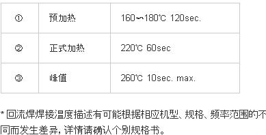 軟焊:晶體產品的軟焊溫度條件被設計成可以和普通電子零部件同時作業,但如果是超過規格以上的高溫,則頻率有可能發生較大的變化,因此請避免不 必要的高溫度.