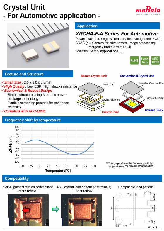 當汽車從機械時代邁向智能時代,一枚看似微小的晶體單元,正成為驅動汽車電子革新的關鍵力量.日本村田諧振器XRCHA16M000F0A12R0石英晶振,以2.5x2.0x0.8毫米的方寸之軀,承載著汽車電子小型化與高精度的核心需求,彰顯著科技匠心的非凡力量.